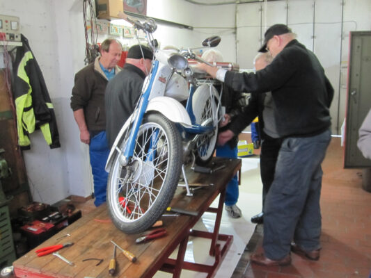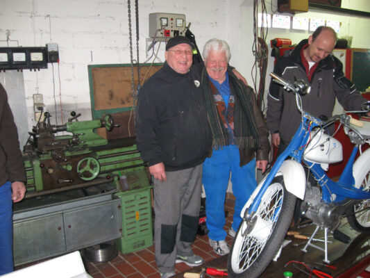 Anwesend waren an diesem Schraubertag 14 Club Mitglieder plus Gäste, die Werkstatt war voll und es hat allen viel Spaß gemacht. So gegen 1700 Uhr wurde begonnen die Werkstatt aufzuräumen und es begann der gemütliche Teil des Schraubens. Abgeschlossen habe ich die Werkstatt gegen 19:00 Uhr.