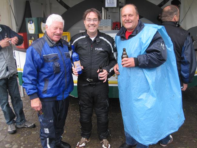 Peter ist auf der Herfahrt liegen geblieben. Mit Egon, der hatte ja die Fahrradbrücke an seinem Auto, eingesammelt und nach hier gebracht. Ausfallgrund: Benzinhahn verstopft. Der Hahn wurde gereinigt und aus meinem Fundus eine neue Dichtung eingebaut.