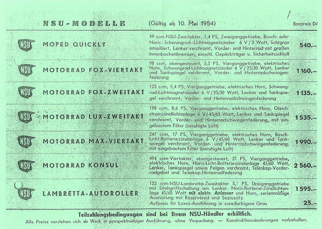 Ob das letztendlich eine kluge Entscheidung war, kann man nicht genau sagen. Denn schließlich war NSU in den 50ziger Jahren der größte Zweirad-Hersteller der Welt…………………………………